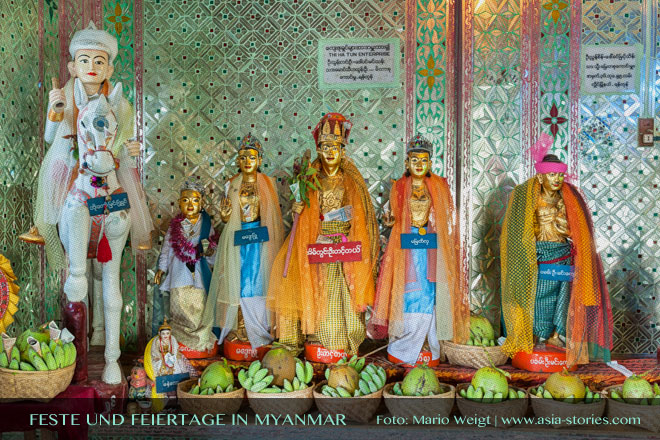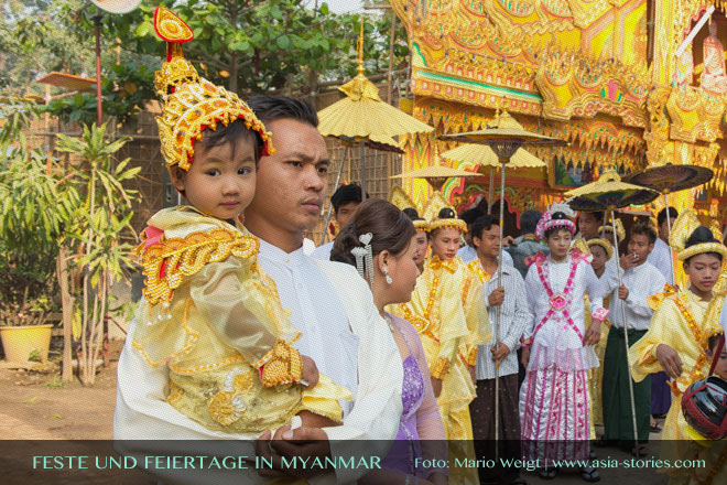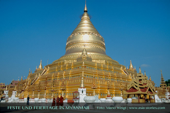 Myanmar, Burma, Birma – ein Land mit vielen Namen, Volksgruppen und Festivals. Farbenprächtige Feste verteilen sich über das ganze Jahr. Die meisten Festivitäten haben einen religiösen und kulturellen Hintergrund. Der Festkalender richtet sich nach dem Mondkalender, der auch eine bedeutende Rolle im täglichen Leben der Burmesen einnimmt. Bei Vollmond werden die größten und wichtigsten Feste in Myanmar abgehalten.