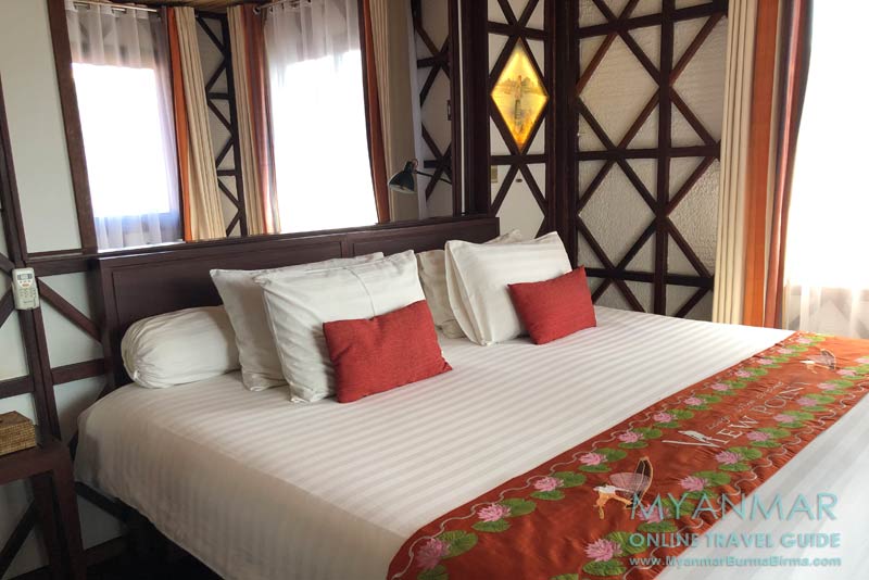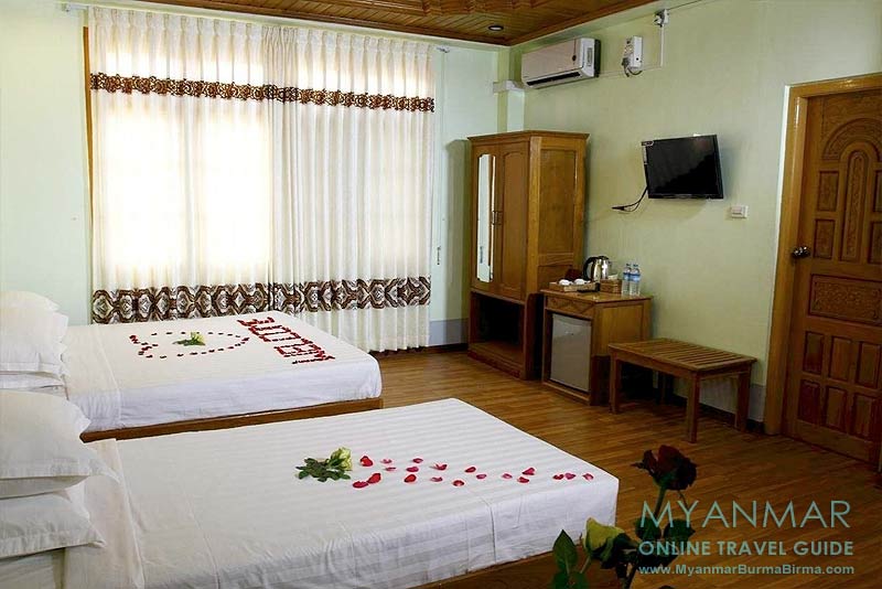 Mit Swimmingpool: Die Gäste nächtigen im Mingalar Inn in zehn gut ausgestatteten Zimmern mit Bad, Klimaanlage, Safe, TV, WiFi und teilweise mit Terrase bzw. Balkon. Standard Room kostet ab 21 US-Dollar und die Junior Suite am Pool ab 40 US-Dollar inklusive Frühstück, Preise über booking. Fahrradverleih, Massage, Adresse: ⇒ Phaung Daw Pyan Road, ca. 600 m bis zum Bootsanleger, www.mingalar-inn.com, mindalarinn@gmail.com, Telefon: 081-209198, 209899.