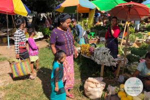 Am Ngwe-Daung-Stausee und 14 Kilometer südlich von Loikaw liegt die Ortschaft Demoso, die für ihren großen Markt (GPS: 19°32’23″N 97°09’32″E) bekannt ist. Immer am Mittwoch und Samstag (Special Day) öffnet er seine Pforten und ist ein Stopp wert. Die Kayah, Kayan, Pa-O etc. verkaufen Haushaltwaren, Kleidung, Schuhe und Kosmetik an überdachten Ständen, sowie Obst, Gemüse, Tee, Gewürze, Fleisch, lebende Fische und Hühner unter freiem Himmel. Eine Kayah-Spezialität ist Khawn, das Hirsebier, welches in Plastikflaschen angeboten wird, inklusive Kostprobe. Na dann, Prost! Auch der Kayah-Pfeffer Makathi mit fruchtig-limettenartigen Geschmack, Tüte ab 1.500 Kyat, wird hier angeboten.