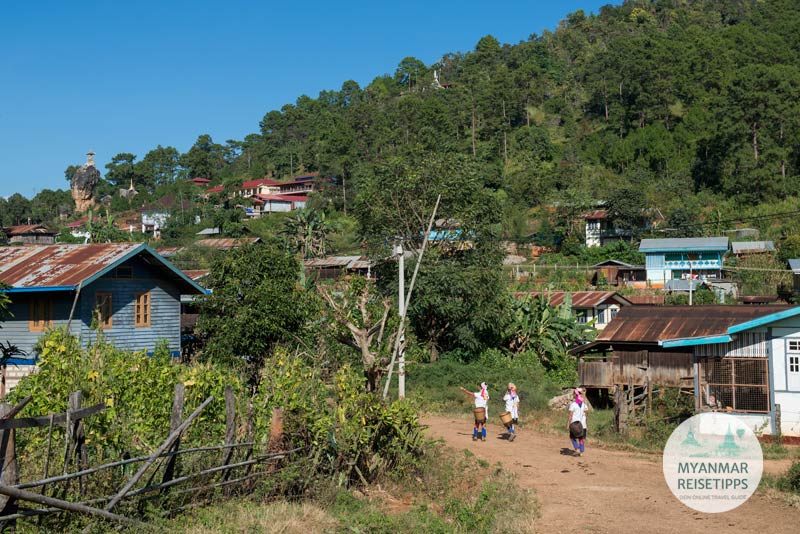 | Info: Eintritt frei. Spende in die Dorfkasse oder Kauf eines Souvenirs wird gern gesehen. Trip per Motorbike: Tagesmiete ab 10.000 Kyat oder per Auto mit Fahrer und Guide ab 80 US-Dollar. |