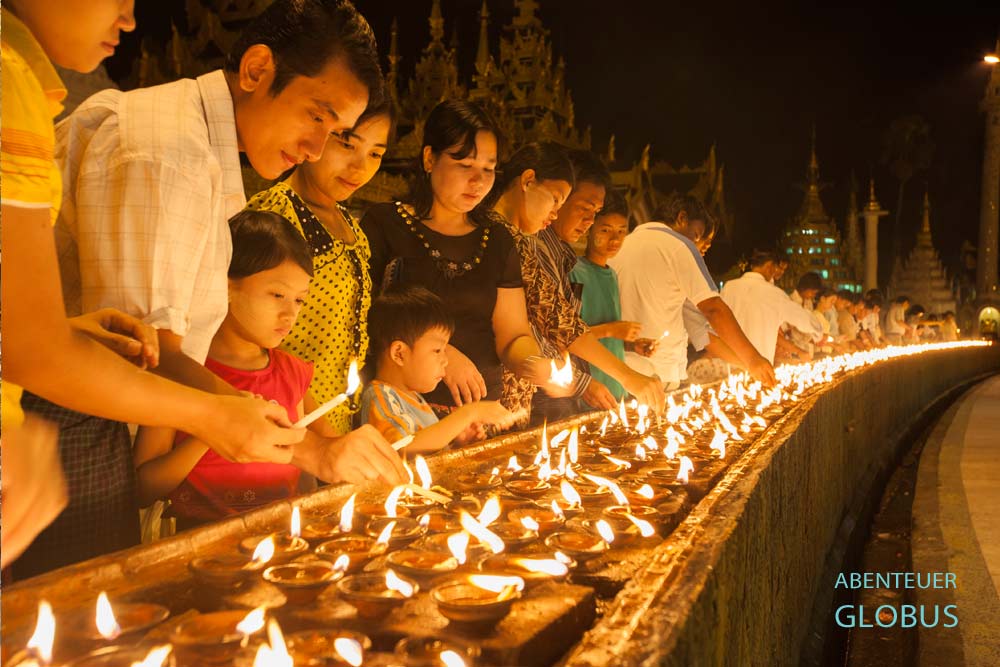 Der achteckige Zedi soll eine Haarreliquie Buddhas beherbergen und ist bis heute ein bedeutender Ort des Gebets. Hier bekommt ihr einen unmittelbaren Eindruck von der tief verwurzelten Religiosität der Menschen in Myanmar: Gläubige entzünden Kerzen, bringen Blumen dar und umrunden die Pagode im Uhrzeigersinn.